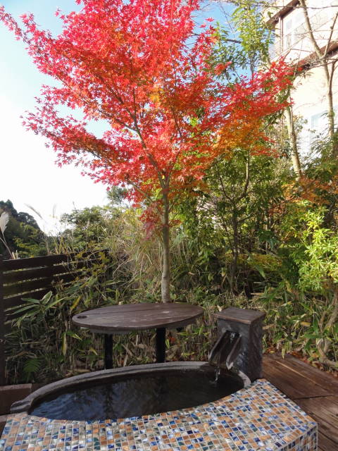 紅葉キレイな庭園にある足湯(3つ)は今までに見たことない!