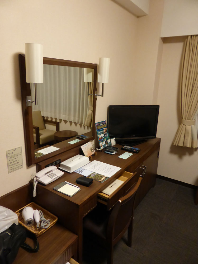 個人的にはちょっとベッドの硬いのが気になりました。ルートインは車利用者が多いチェーンなので、硬いベッドを好む利用者が多いのかもしれませんが、3泊でリゾートとなるともう少し柔らかいベッドの方が合っているように思いました。