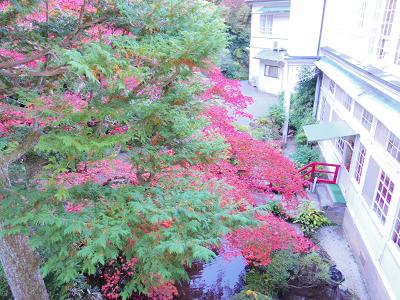 - 宿泊した西洋は広々したバスルームがあり、部屋は改修済らしくきれいでした。窓からは紅葉した日本庭園が眺められました。