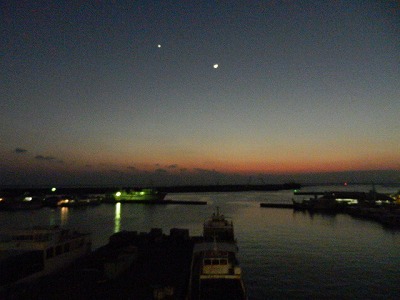 朝のベランダから見た離島への連絡船が出ている石垣港。