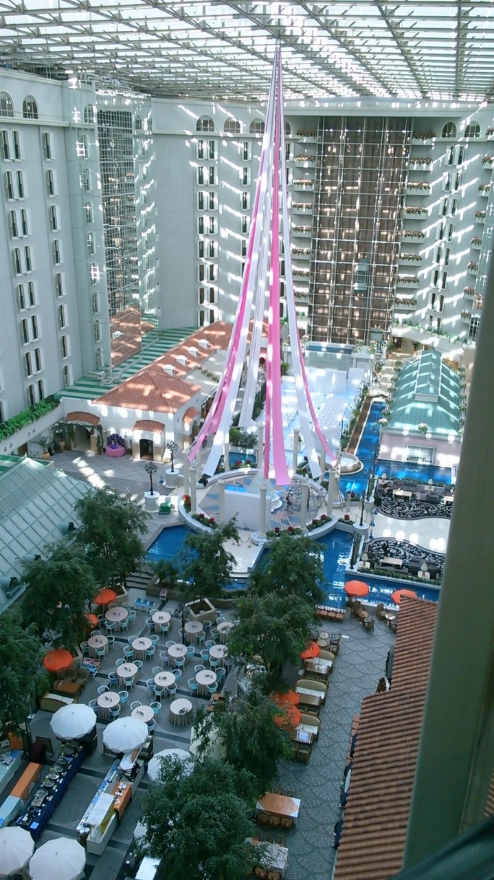 このホテルの最大の魅力はやはり中央のアトリウムホールだと思います。吹き抜けから垂れ下がったホテル中央のオブジェは圧巻です。