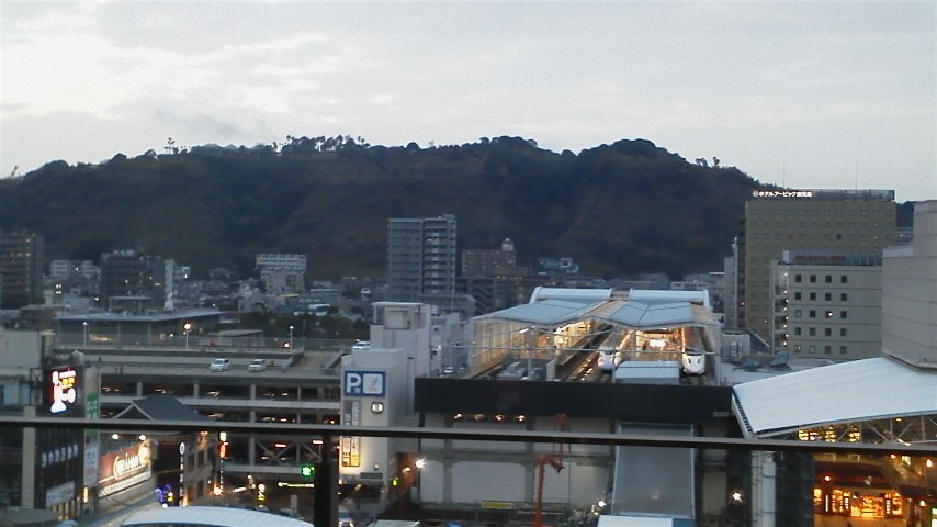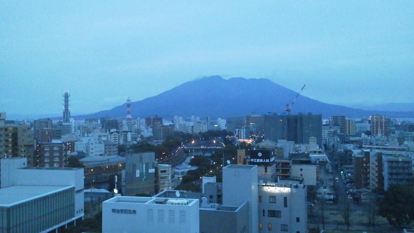 7階フロントからは、海側の桜島と山側の鹿児島中央駅の九州新幹線の発着が眺められます。