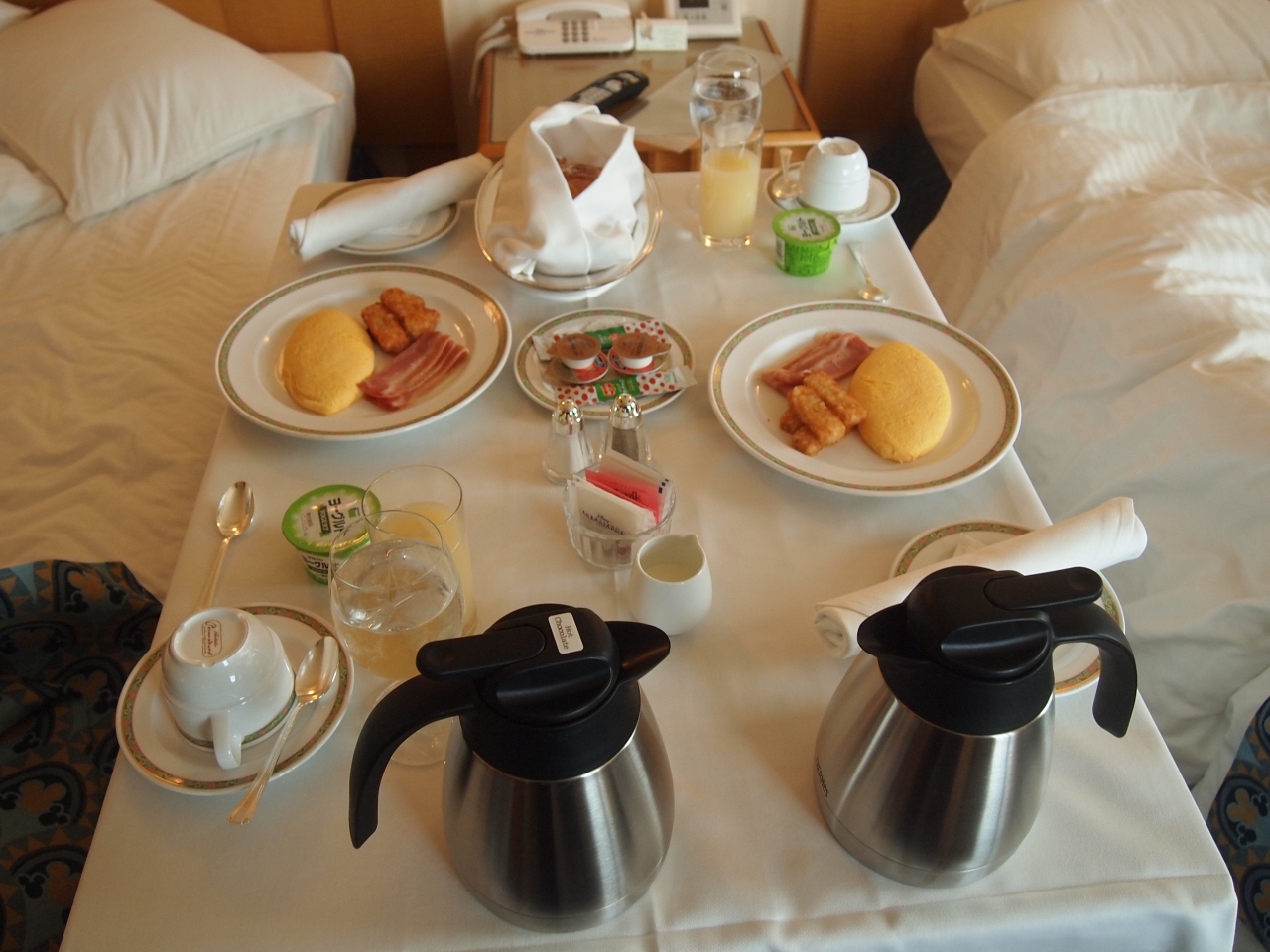 バケーションパッケージの2泊3日コースだったので2日目の朝食が強制的にルームサービスだったのですが、シェフミッキーにするか、そうでなければディズニーランドで食べたかったのが残念です。