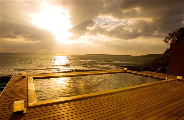 ホテルで一番感動したのは露天風呂からの景色です。海を望める露天風呂で、日暮れときに入浴したら遠くに夕日が落ちていくのを見ることができて、海が黄金色に反射してとてもきれいでした。