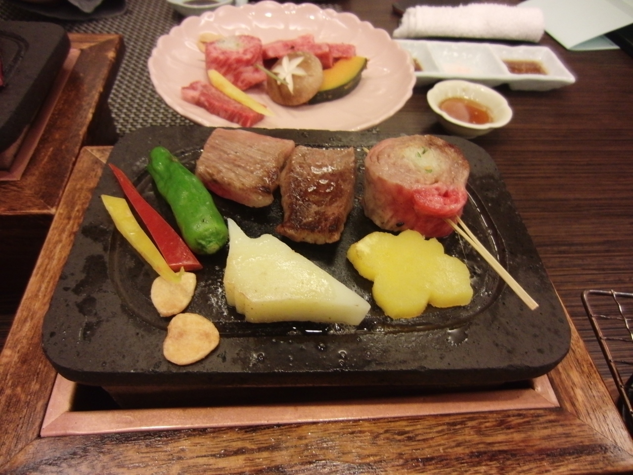 食事は夕朝食ともに食事処の個室でとりましたが夕食は海の幸、ステーキ、ともにおいしく、朝食ともに量が多くお腹いっぱいになりました。