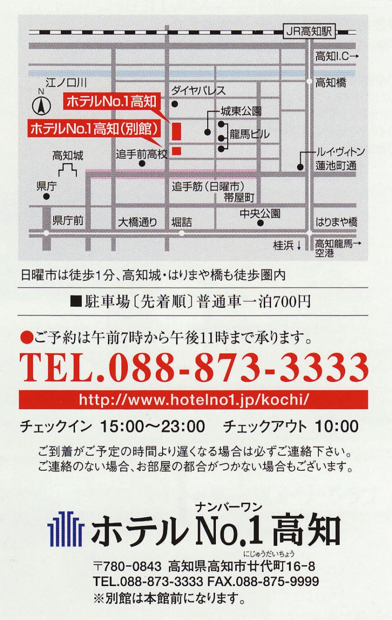 はりまや橋や高知城、ひろめ市場など名所はみな徒歩圏にある。