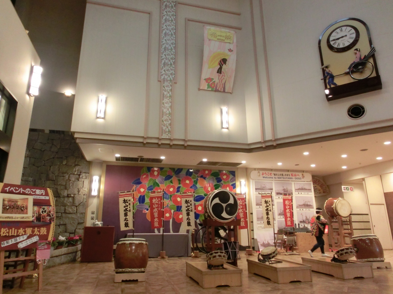 夕食もおいしく、朝食のバイキングではじゃこ天を目の前で揚げてくれていました。また、夜21時から30分間行われる水軍太鼓は迫力があって感動しました。用意されていた席も満席になって立ち見の方もいらっしゃったので15分前くらいから席に着いておいた方が良いかもしれません。ロビーの売店は22時まで開いていました。ここちよくゆったりと過ごせる旅館です。