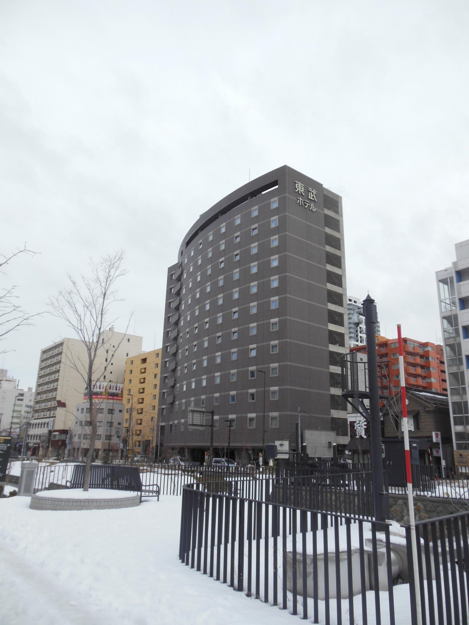 二条市場には近いのですが、すすきのの交差点には徒歩5~6分ぐらいでしょうか。空港行きのバス停もその交差点の近くですので、重い荷物があると少し負担です。創成川側の部屋なら景観もいいのでしょうが、今回泊まったのはシングルはビルの屋根に面した部屋でした。それでも、ウィンターシーズンの宿泊料はとてもリーズナブルですので、コスパはまあまあ良いと思います。