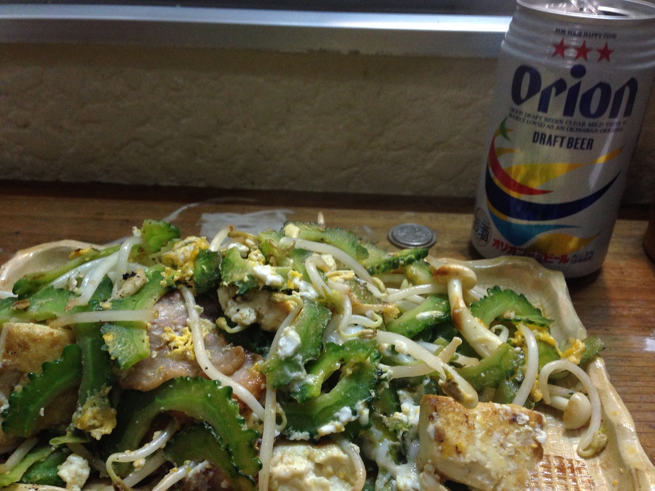 写真は1階にある食事処のゴーヤチャンプル。美味しかったです。