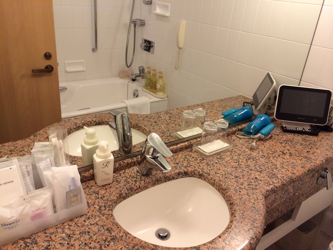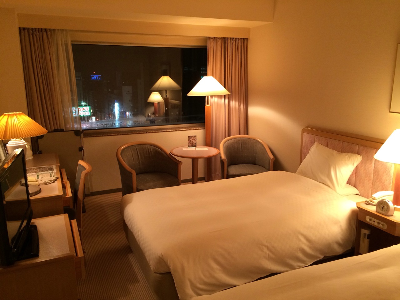 部屋はこぢんまりとした感じですが、設備が整っていてとても綺麗です。プラズマクラスターの空気加湿清浄機や浴室用テレビなどもありました。ベッドはとても寝やすく、普段ホテルでは熟睡できないのですが、かなり熟睡できました。窓の下には少し奥行きのある大理石の台があるので、行き交う列車を見ながらコーヒーを飲んだりしました。