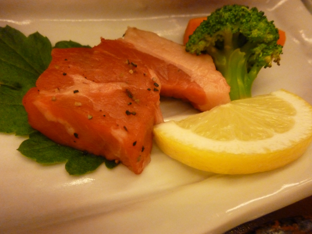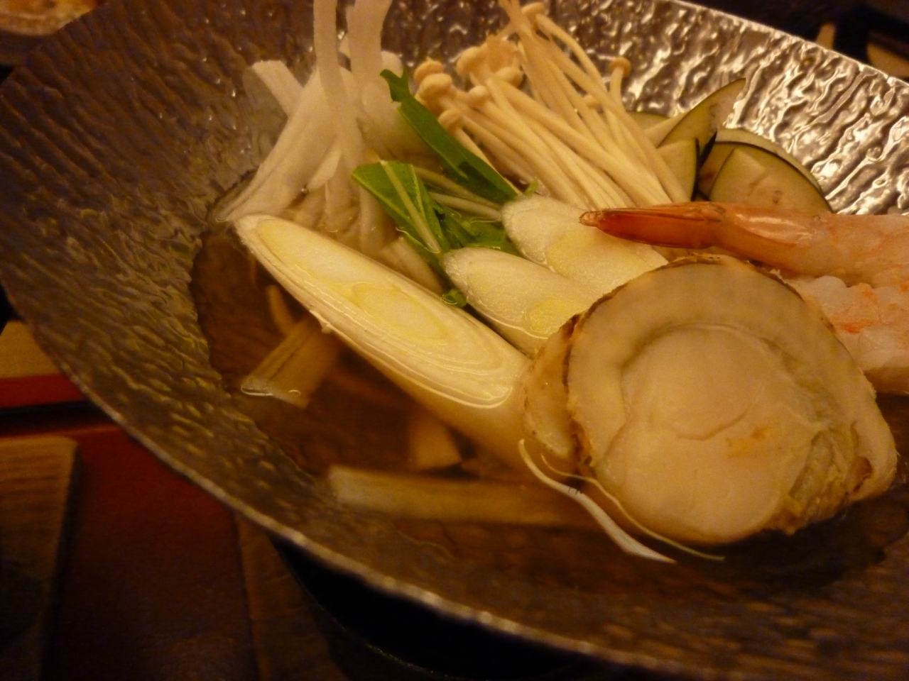 食事は宴会場にて畳に座って食べました。隣とはかなり広い間隔で仕切りがあるので、プライバシーは保たれていました。海の幸が色々出てきて、お刺身も美味しかったです。