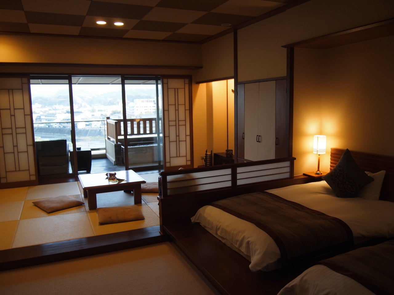 家族四人で露天風呂付きの部屋に宿泊しました。四人でも十分な広さがあり、ベランダの露天風呂が広くて最高でした。食事はレストランになってしまいますが個室を用意していただいたので他の方の目を気にせずにのんびりと過ごせました。接客も親切です。値段は少し高いですがそれ相応な宿です。
