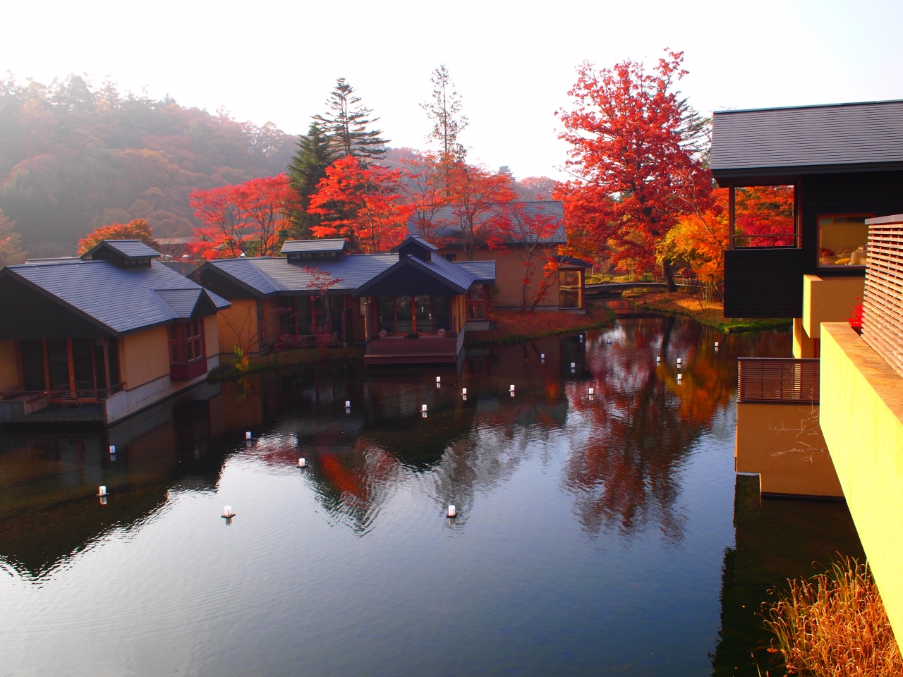 全国的に有名になった星野リゾートの先駆け施設。チェックインから専用スペースでおもてなしが始まります。その後、広い敷地内の各部屋へ案内されます。基本的には、連泊してくつろぐ滞在型ですので敷地内にレストランが数箇所、スパ、温泉、ライブラリースペースがあり非日常をゆっくりと楽しめます。