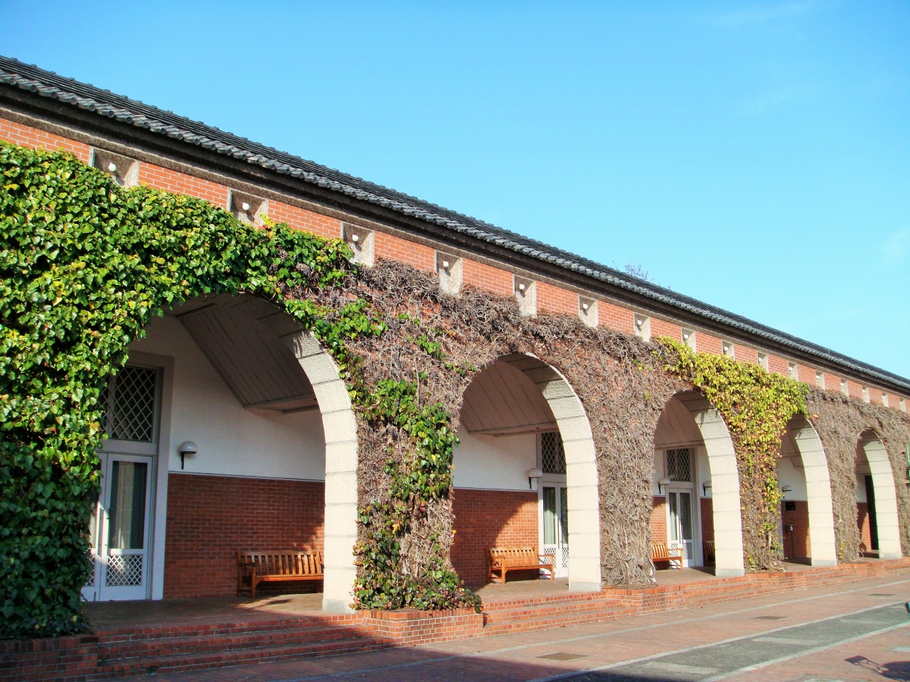 蔦が覆う赤レンガの外壁が印象的ですね。