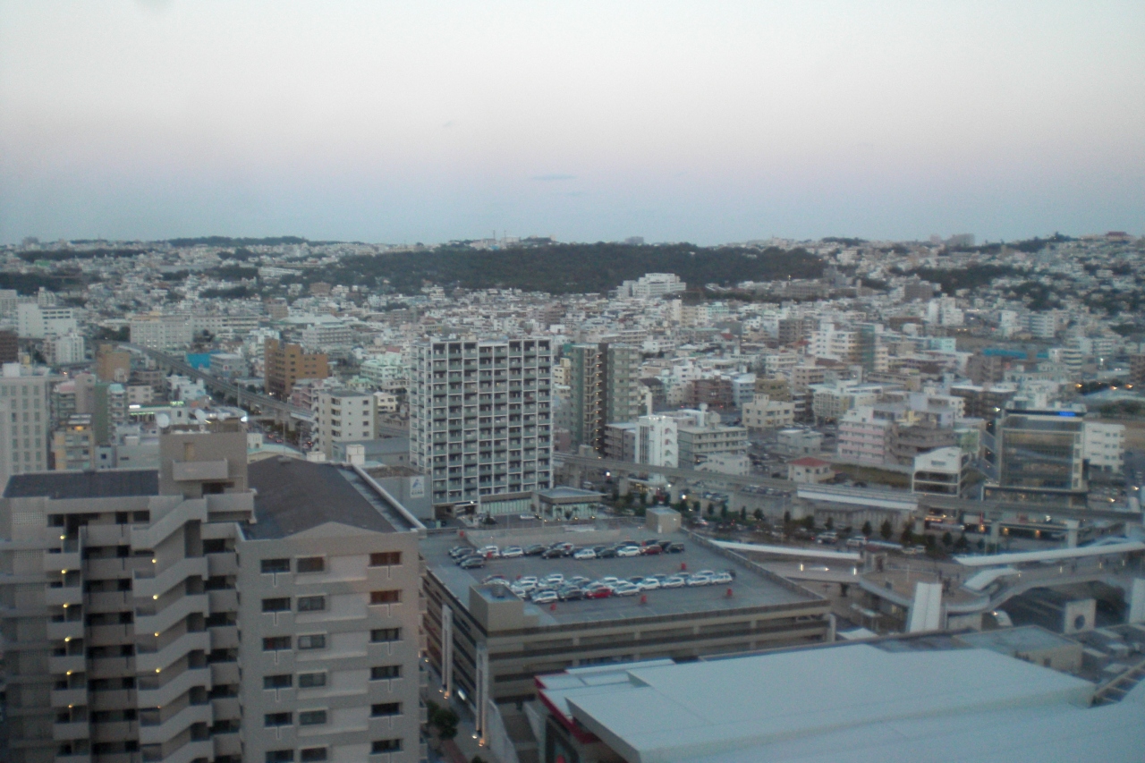 最上階のレストランの眺めは最高です、毎日だと飽きるので周辺を散策しながらお店を探すのも楽しいと思います、天久リウボウやメインプレイス、県立美術館、DFSギャラリア、NHK沖縄放送局など楽しめると思います(写真の上部に見える緑の場所は末吉公園で1月後半は桜も見ることができます)