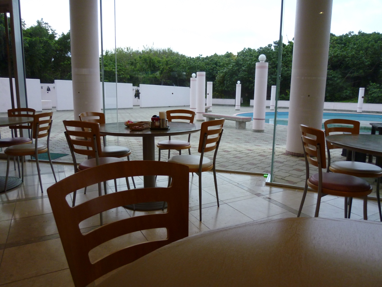 パックで利用しました。ダイビングとホテルの宿泊、飛行機がついたパックで、とても格安で利用できました。ダイビングショップが併設されているので、ダイビング前はロビーに集合でき、終わった後もすぐに車から降りたら部屋に行くことができます。また、広い浴場も完備されていてよかったです。ロビーでは、繁華街から離れているため、レストランで夕食も1000円程度でとてもボリュームのある定食がたべれました。毎日違うものが出るので、とてもよかったです。目の前は前浜ビーチなので、夕陽がとても綺麗でした。