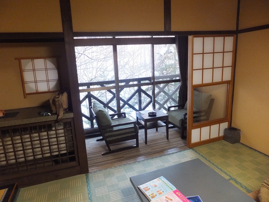 部屋:「秋の花見館」 2人ですので十分な広さ 畳も新しくなっていました。暖房も十分効いています。