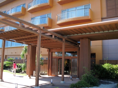 廊下は中庭?に面して長く通っていて、プールで遊んでいる子供が見えました。
