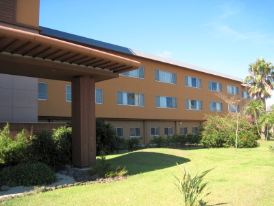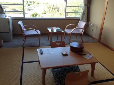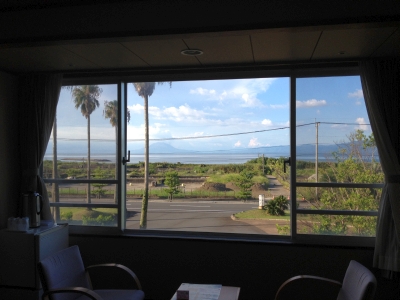 客室は海に向かって建ってはいるのですが、道路を挟んで向こう側がすぐ海というわけではなく、少し距離があります。