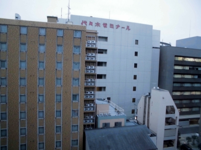 大都市市街地の中のビジネスホテルなので、上のほうの階を用意してもらえましたが眺望は公園と、公園を囲むビルしか見えませんでした。