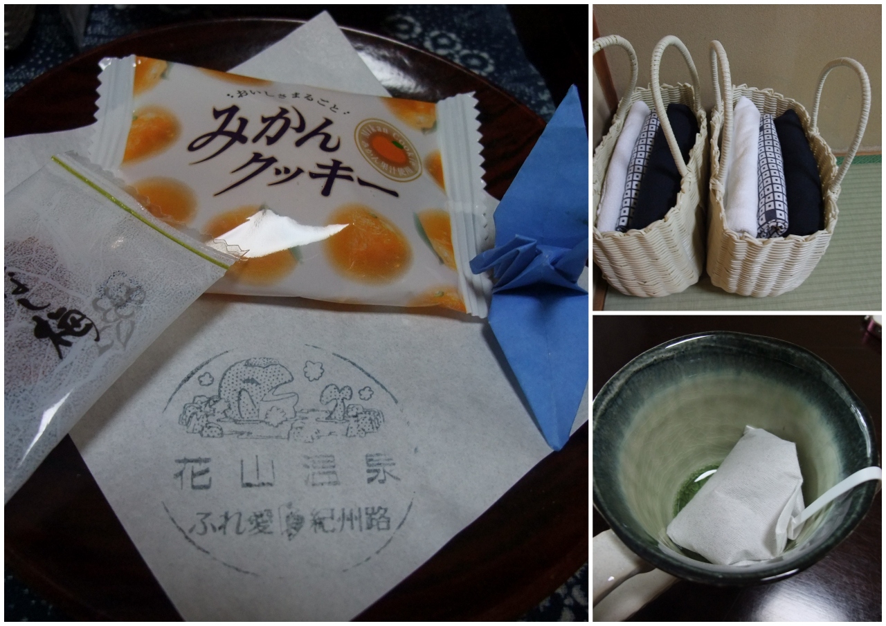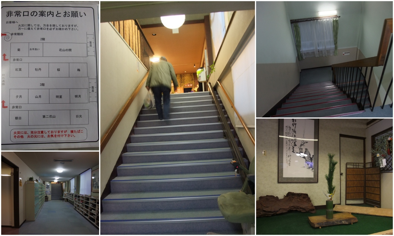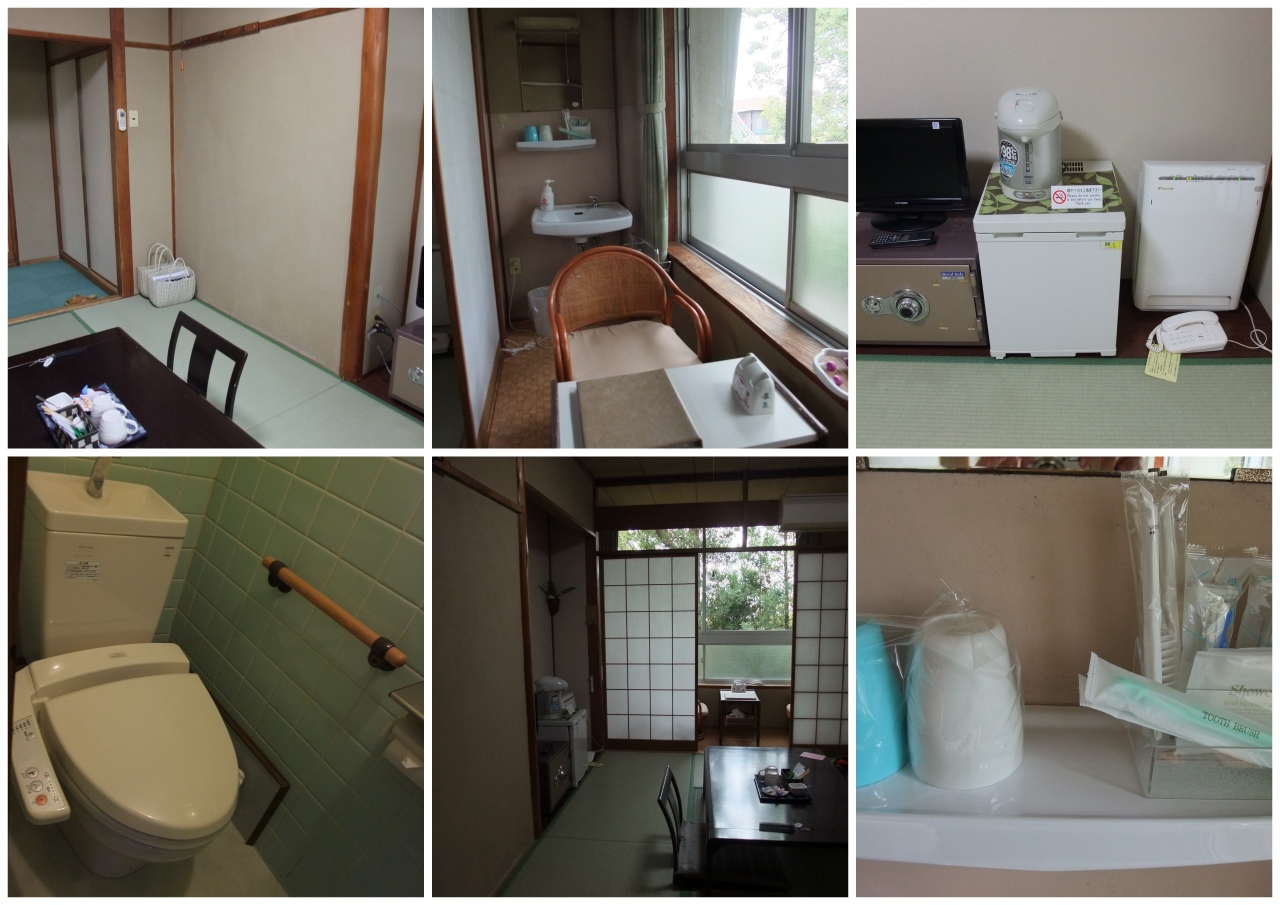 まず部屋は2~3Fにありますが、エレベーターはありません。1Fから受付のある2Fへもエレベーターがありませんが、後付けの椅子のエレベーターがあります。室内はシンプルな和室。トイレあり。奥に洗面台があり、歯ブラシとコップはありますがお湯は出ません。水オンリー。ダイヤルのある金庫がありますが、鍵で開閉するのでダイヤルは関係ないです。布団は羽根布団。掛け布団はふかふかして気持ちよかったです。温泉セット(浴衣、丹前、バスタオル、フェイスタオル)はカゴに入れてセッティングされてありました。