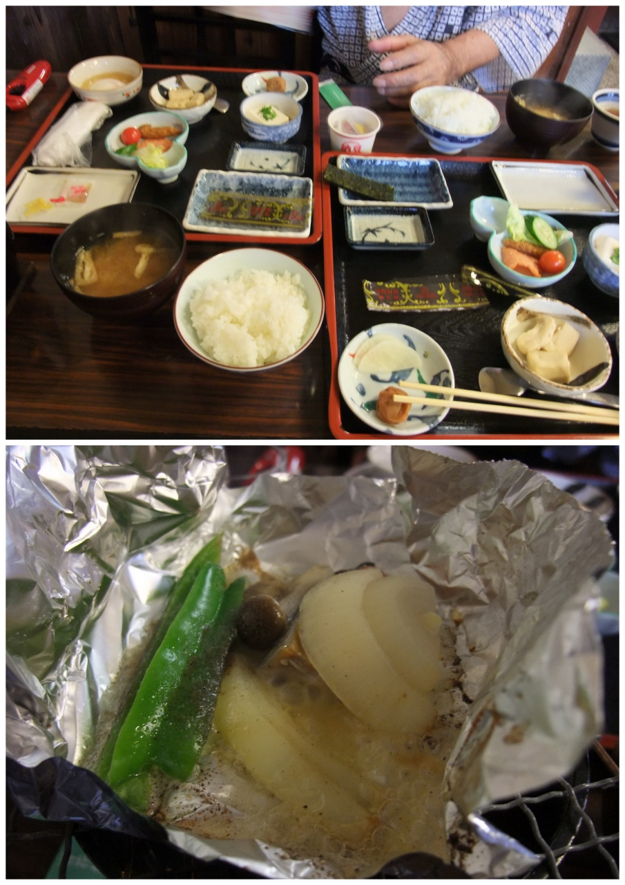 食事は、夜は玄関近くにある和み亭で。クエプランです。リーズナブルなので豪華というほどではありませんが。朝食は2F、温泉場手前の茶論で頂きます。