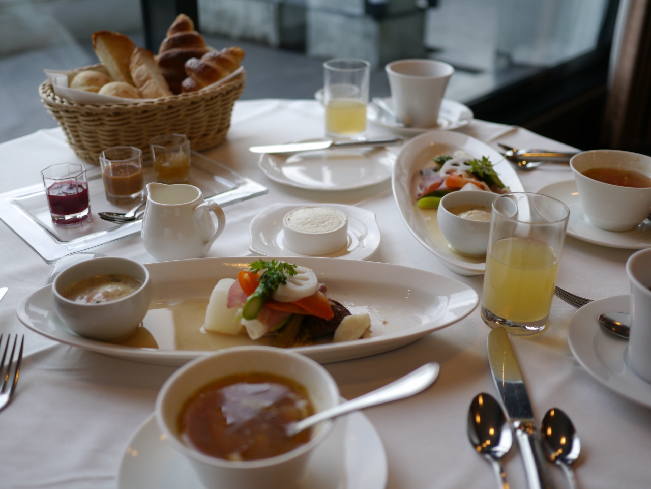 また、夕・朝食も、富士山が見える窓際のお席で頂くことができました。