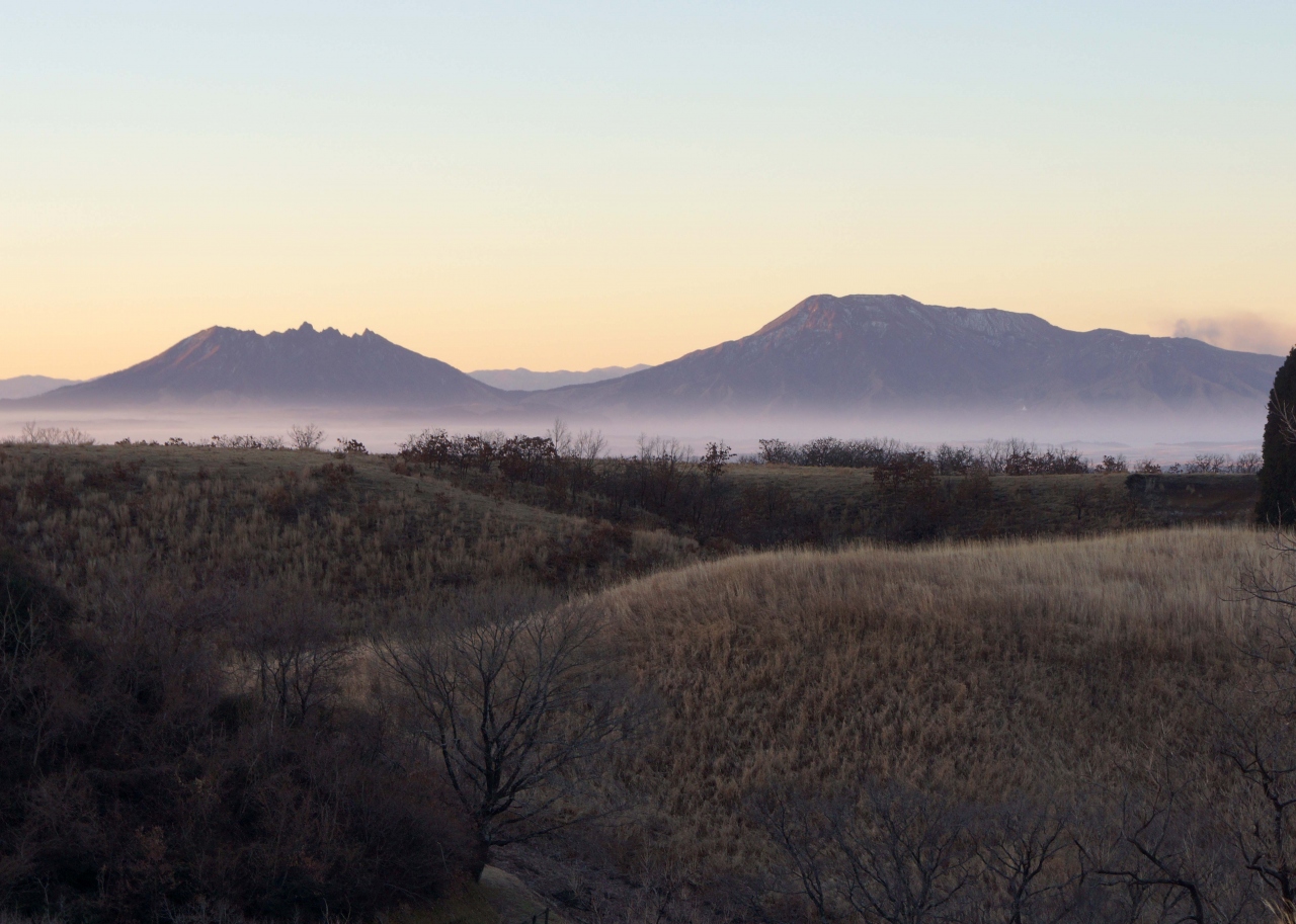 標高900mの高原にあり草原のかなたに阿蘇五岳や九重連山が展望できます。夜は、ホテル主催の“星のツアー”があり、訪れた時が新月時でやや曇っていましたが雲の切れ間から輝く星を満喫出来ました。露天風呂はホテルの光に影響されずに、夜空が見られるようにと館内とは少し離れた所にあり、冬場はややきついです。大浴場は前面ガラス張りのため阿蘇五岳が一望できます。“黒川温泉露天風呂めぐり”の一湯となっています。