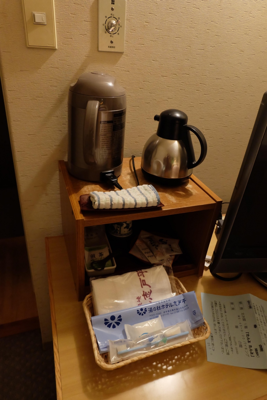 一人で安いプランだったため部屋は狭く、コンセントもテレビやケトルで埋まってしまっていたため宿の方に延長コードを持ってきていただきました。複数人で和室に泊まればもう少し快適かもしれません。部屋にはお湯もお水も用意してあり、浴衣もMサイズとLサイズが用意されていたため、コンセント以外の設備には不満がありません。