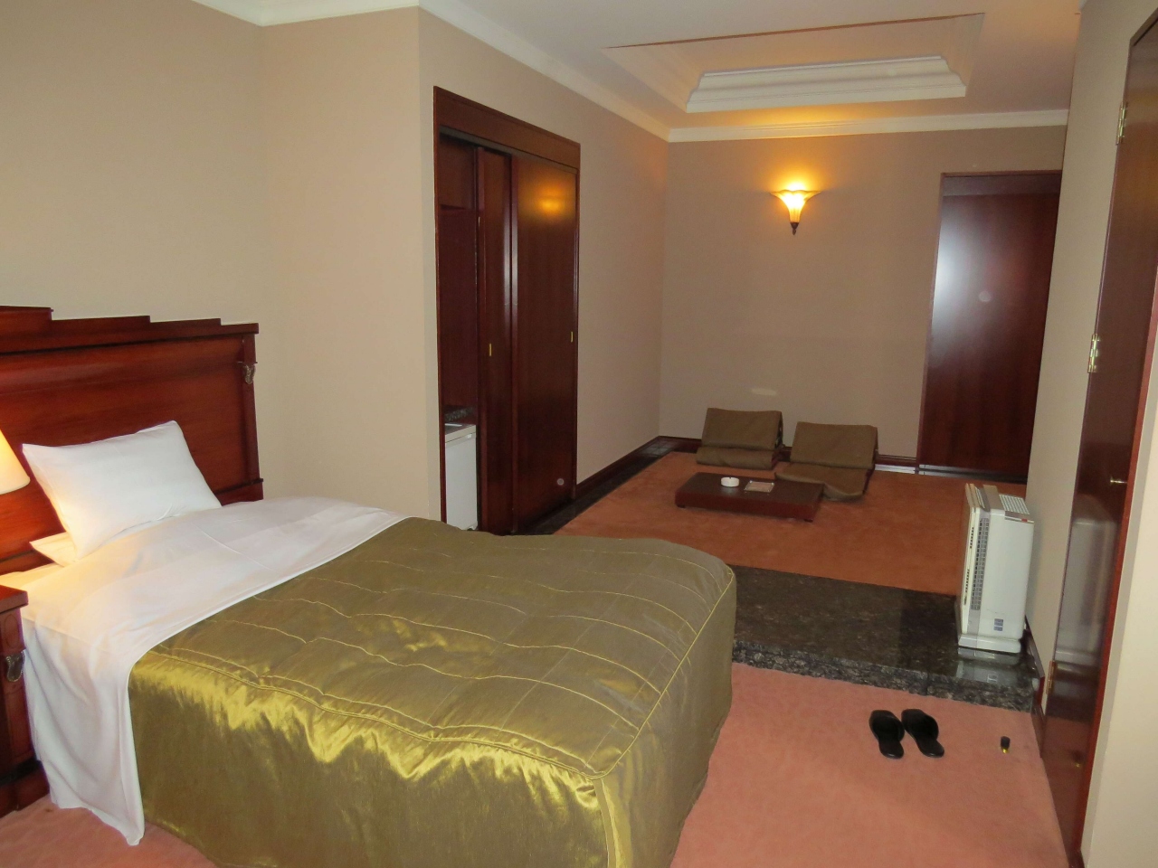 おそらく、風呂上りに横たわってゆったりするコーナーとして用意されたものだと思うのですが、好みの問題なんでしょうが、私の場合ですと椅子とテーブルがあったほうが良かったと言う気がします。