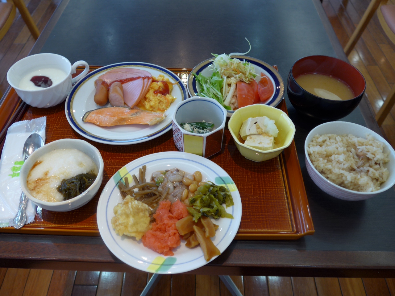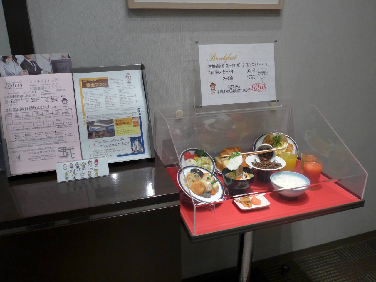 朝食は最上階から大分の景色を眺めながら大分のお勧め料理屋九州各地の食材がふんだんにあるバイキングを楽しめます。