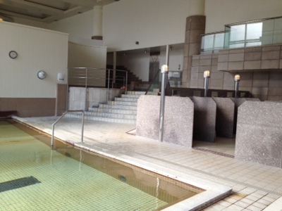 階段を登り客室が立ち並ぶ長い廊下を通り抜け今度はエレベーターで地下へ