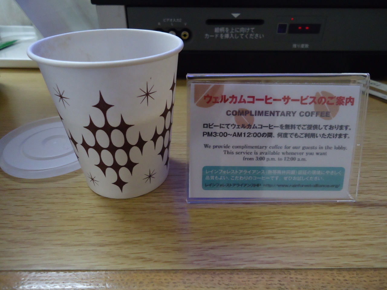 フロント前にコーヒーが置いてあり