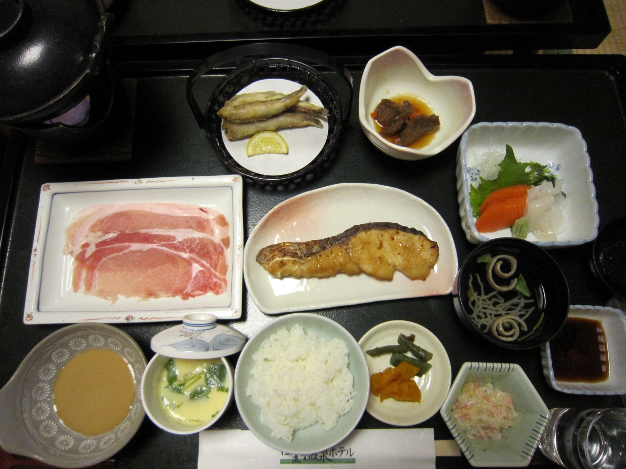 今回利用したプランは、お部屋食です。ちょっと少なめかなと思えましたが、バイキングで食べ過ぎてしまう私にはちょうどよかったかも。しゃぶしゃぶなどをいただきました。翌朝の朝食は、会場で和食膳。他に湯豆腐、温泉玉子、飲み物などは自由にいただけました。