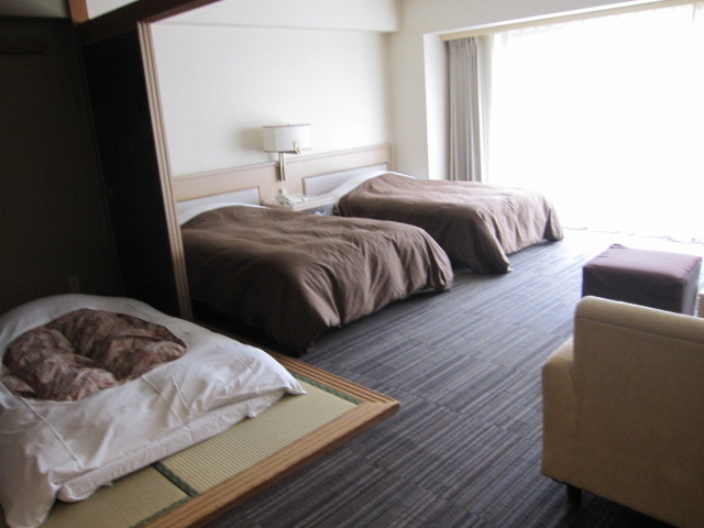 3時迄は早く着いても部屋には入れません(ロビーで待つ人多数)。60?の和洋室は広々としていて良かったです。お布団も最初から敷いてありました。お部屋備品では、お風呂に行く時用のかごバッグ(タオル等を入れてある)が好評でした。大浴場の2箇所のにごり湯がとても体が温まって良かったです。ビュッフェの夕食は、少しずつ色々な種類のものを食べられるようにあらかじめ小皿に盛り付けてありましたが全種類制覇できないくらい種類がありました。揚げたて・焼きたて・握りたて(お寿司)のものをすぐに食べられるのも良かったです。食事中に浴衣の袖をとめる輪ゴムを貸していただけたり、色々な配慮が感じられました。部屋の外用の茶色のスリッパのサイズが女性には大きすぎたのだけが難点です。