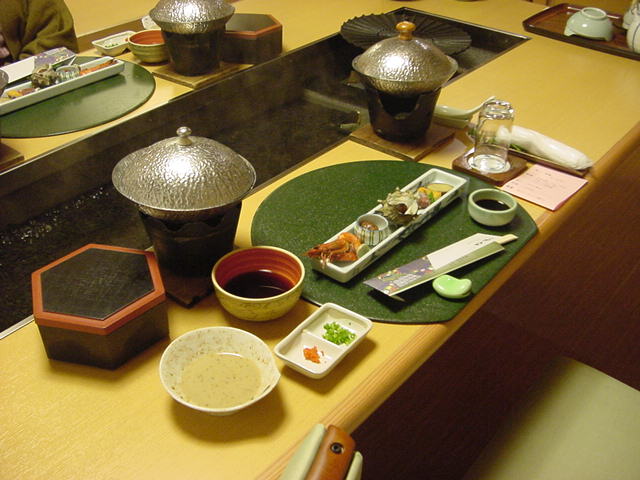 そして夕食は個室で。目の前で揚げてくれるさつま揚げ、向かい合って座ったその真ん中を流れるのが源泉で、そこで作ってくれる温泉卵が本気でおいしかった。