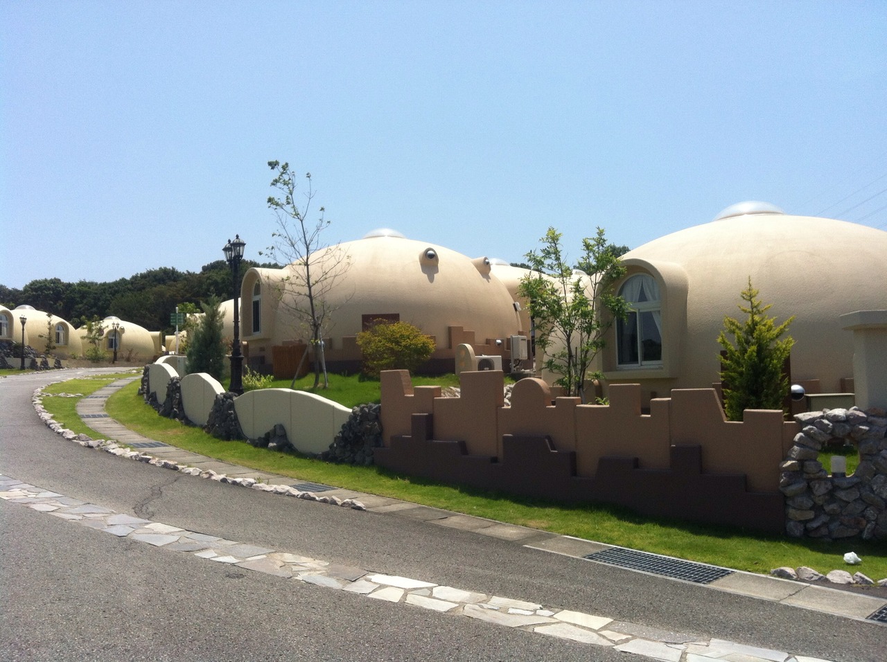 足を踏み入れるとそこはドーム型の建物がズラッと並んでいて、ちょっぴり異国気分。晴天の日だったのですが、青い空と柔らかな建物のカラー、そしてお手入れされた緑が素晴らしいコントラストで心がスーッとします。