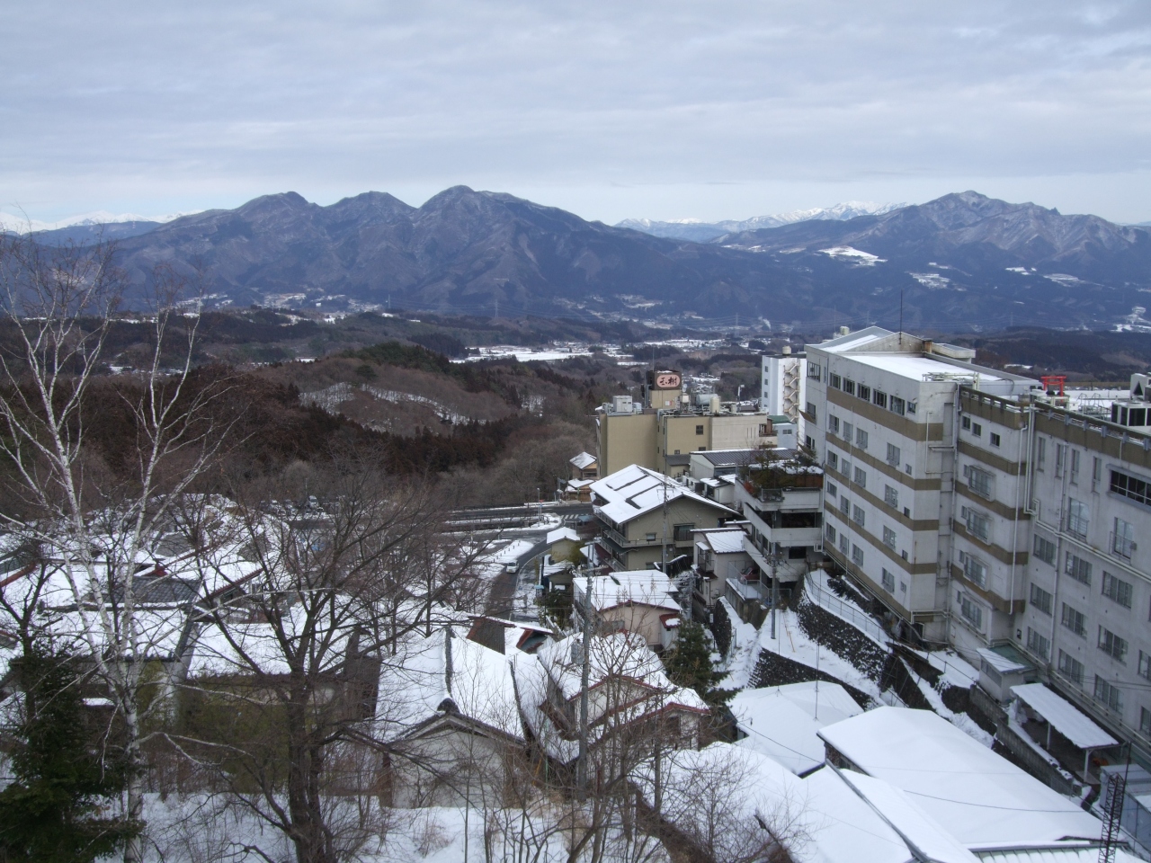 石段街の途中で、すぐ脇にあって、観光に便利です。しかも高台にあるので、部屋からは、伊香保温泉街を見下ろせて、赤城山や奥日光の山々が見えます。建物の外観は古く見えますが、館内は丁寧に手入れがされて過ごしやすいです。冬は部屋に、エアコンの他にコタツもあって、ほっこりします。