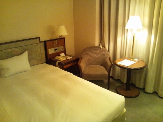 駅からそれなりに近いですが、ちょっと奥側です。披露宴会場もありそれなりのホテルだと思いますが、値段はそんなに高くありません。部屋はまあまあの広さですが、設備が若干古いようで、お風呂のお湯は自動ではなく、水とお湯の二つの蛇口で調節するタイプです。