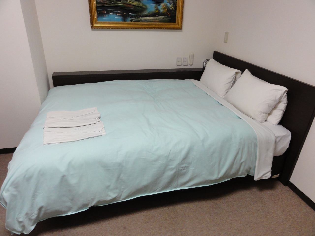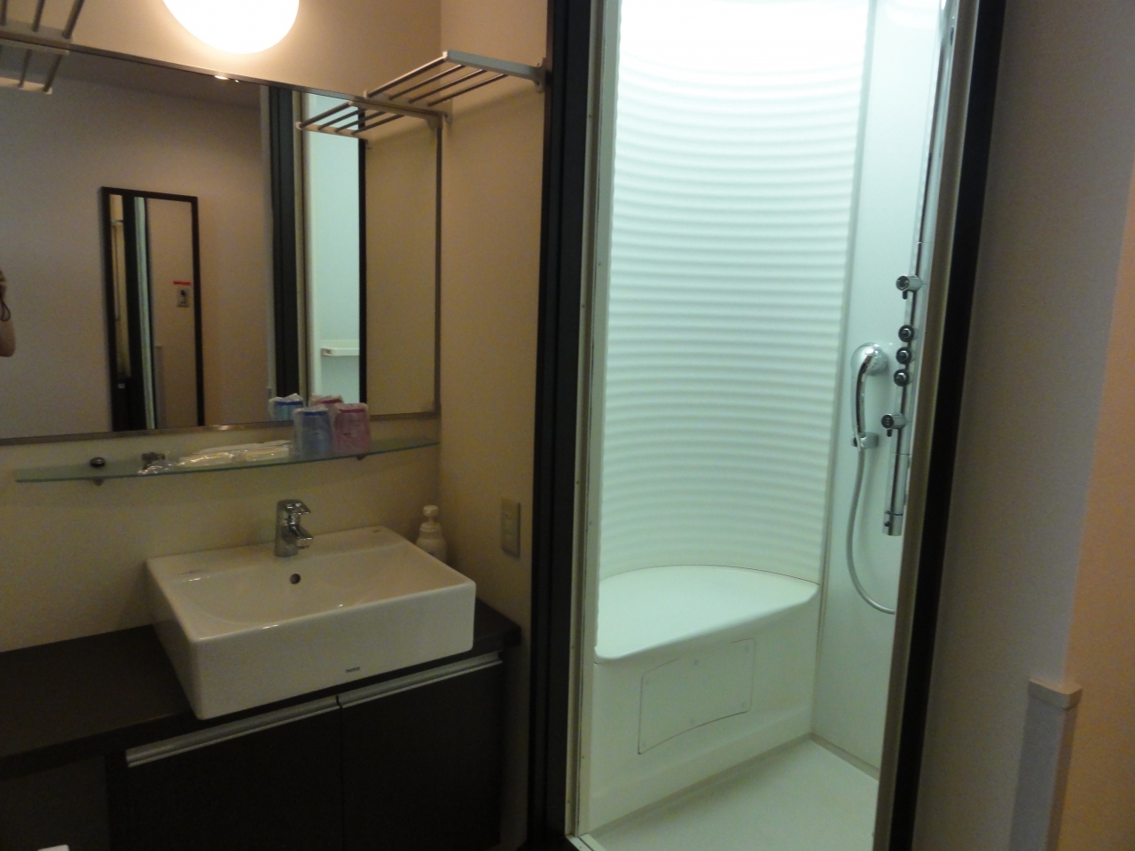 客室は一般的ですが、広くて快適でした。大浴場があるため、部屋にはシャワーのみがありました。朝食にはおにぎりがありました。