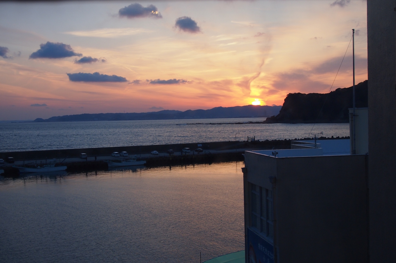 お部屋から海は見えませんでしたが、窓からは誕生寺の敷地と緑が見えて気持ちが良かったです。到着が夕方だったため、中居さんに足湯から夕日が見えると教えていただき、きれいな夕日を見ることもできました。