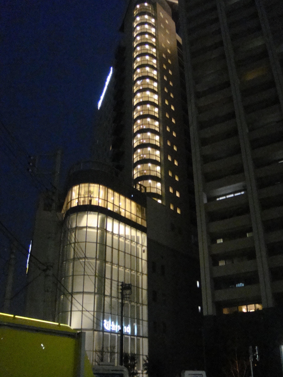 横須賀線武蔵小杉駅南口から歩いて数分、中原街道沿いにあります。武蔵小杉駅付近は現在再開発中で、工事がいたるところで行っていて、飲食店やスーパーも余りありません。フロントが2階にあるため、直接ロビーから部屋にエレベーターで上がることができ便利です。また高層階の部屋からは都心方面の夜景や、遠く羽田空港の離着陸も見えました。