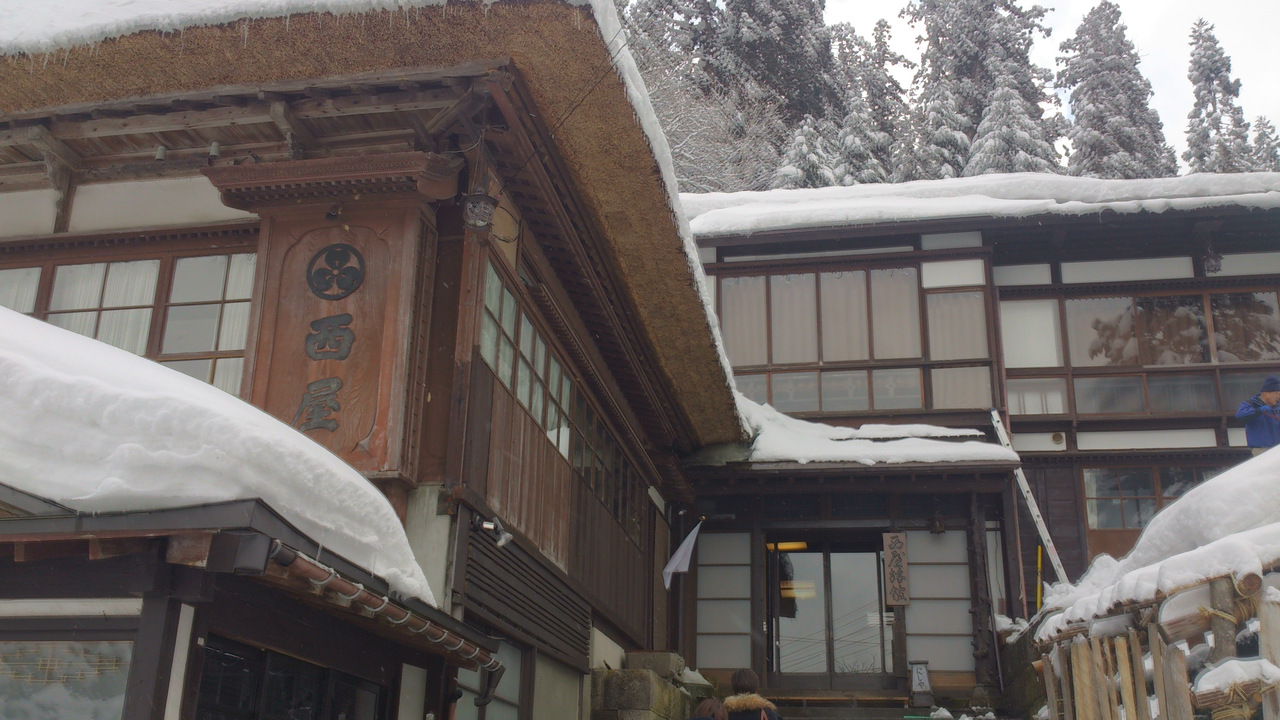 米沢駅からバスで45分、山間の温泉街にある茅葺き屋根の日本旅館。東屋、中屋、西屋と3軒並んでいた茅葺屋根が今では、西屋だけになってしまいました。シャワーがなかったり、朝晩冷え込んだりと不便なこともありますが、秘湯と言うべき素晴らしい日本旅館でした。