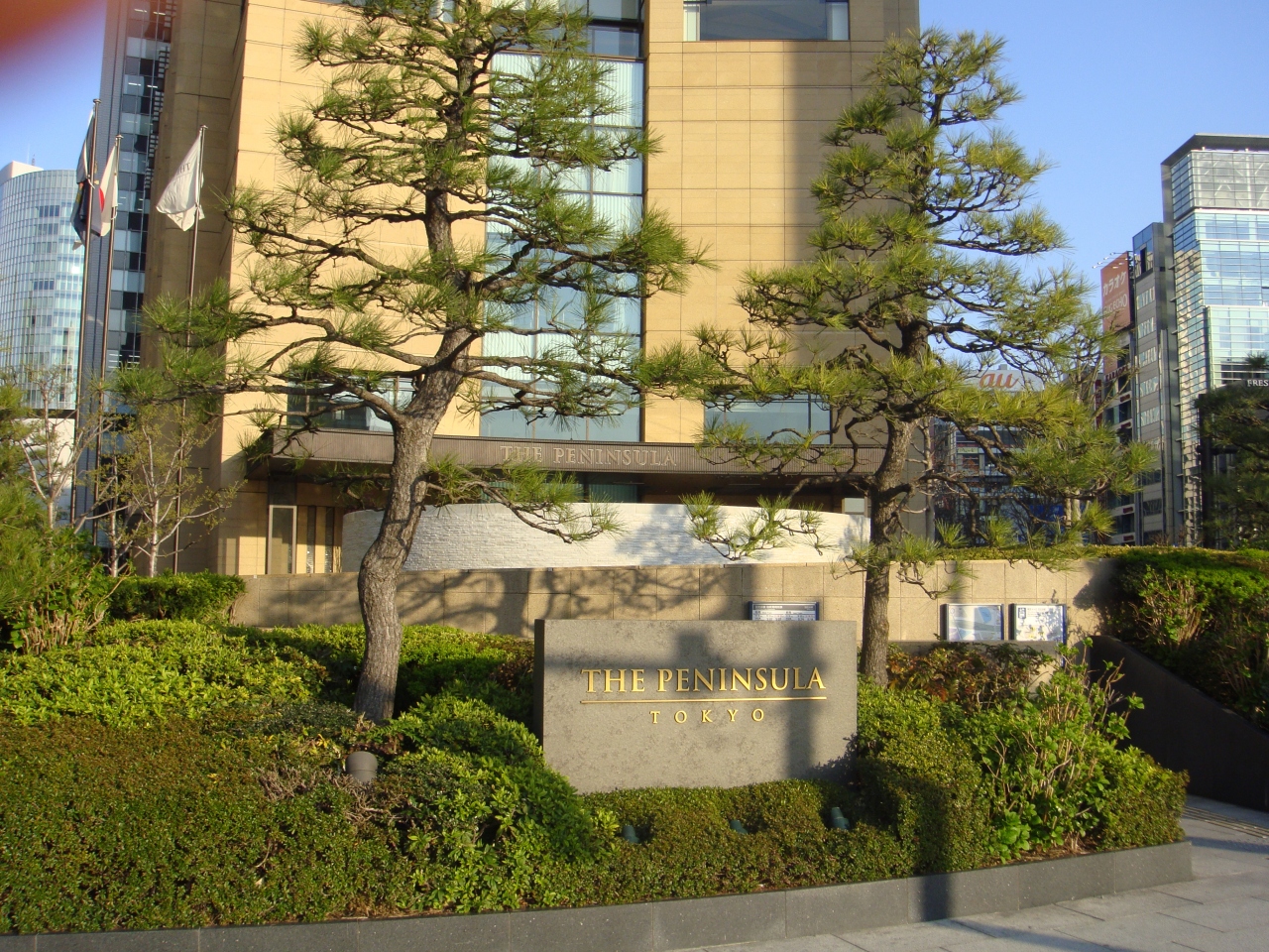 「ザ・ペニンシュラ」と言えば、香港の九龍にある、1928年に開業したザ・ペニンシュラ香港が有名ですが、東京にもその高級ホテルが有楽町一丁目にあります。2007年創業の高層ホテル、屋上にはヘリポートがありますが、これは非常用ヘリポートではなく、成田空港との間をヘリコプターで送迎するためのものです。またペニンシュラはチョコレートでも有名、地下のカフェで購入できます。