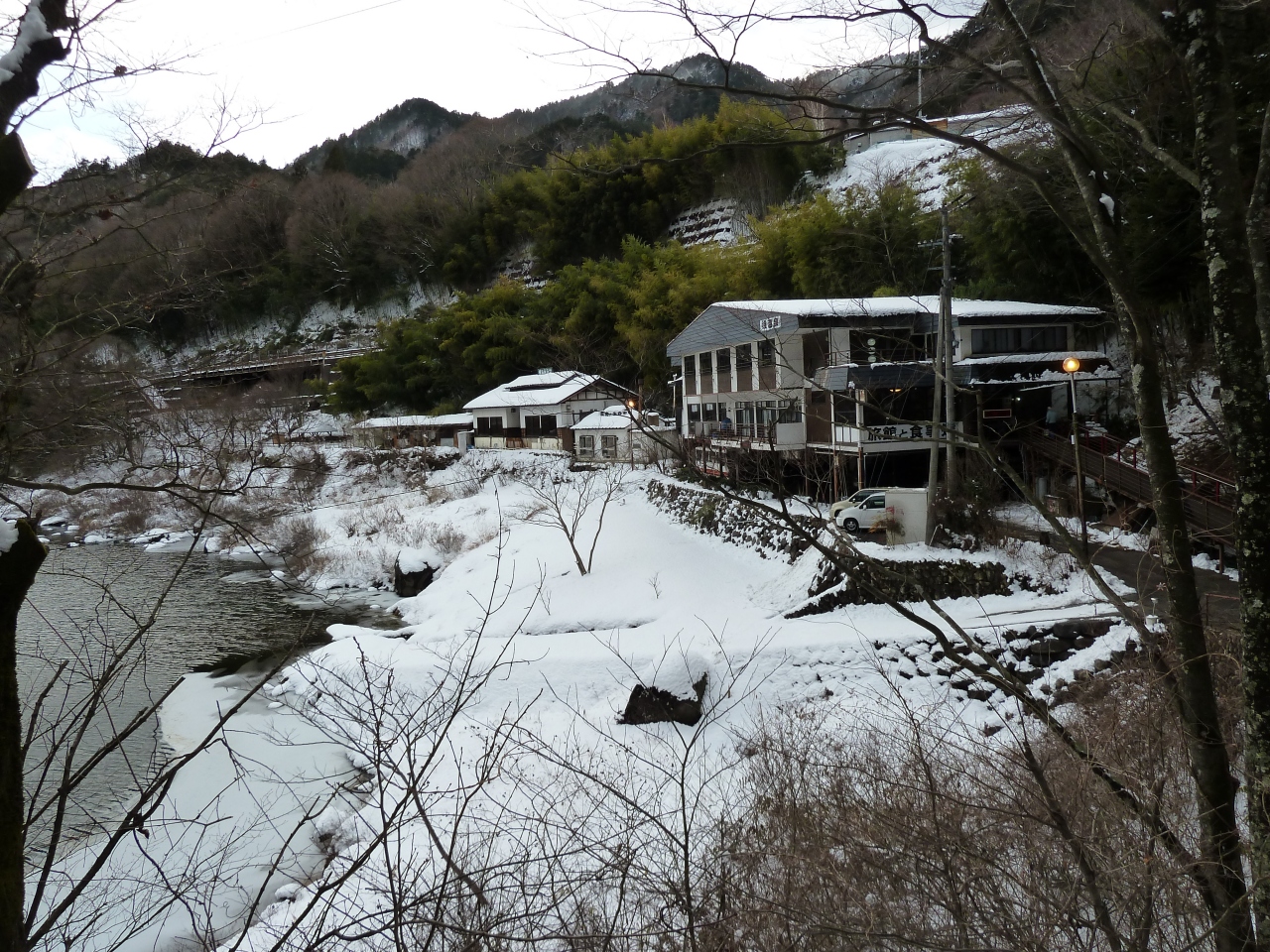 国道からかけはしを渡ってすぐの所にあり、国道側からも見えています。お風呂は冷泉と温泉の2つの湯船があり、木曽川を眺めながら浸かれます。