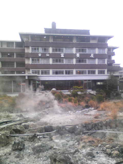 雲仙の地獄の横に建っています。ホテルの裏が地獄の観光コースになっている為、宿泊者以外の方が多く出入りしていました。建物の古さは隠せないのですが、温泉に浸かってて夕食、朝食食べて一人一万円で大満足の宿でした。