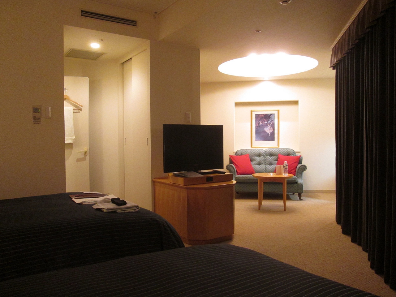 - 今回もシェラトン・コーナーツインにアサインされましたが、客室に高級感はなく、机も小さく仕事には向きませんが、37?あれば寛げます