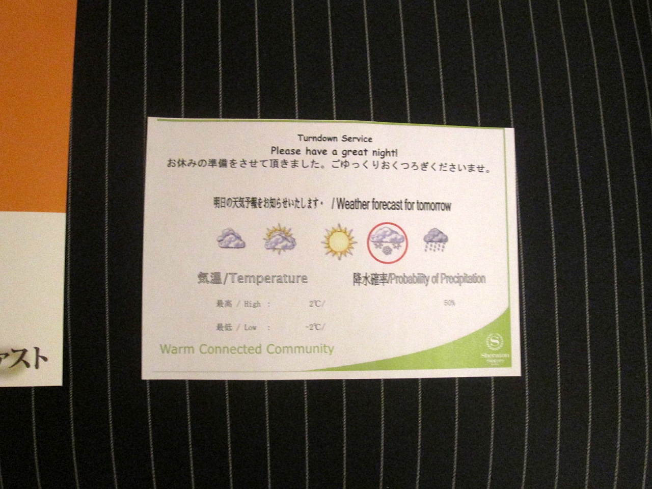 このホテルは私の札幌での定宿で、いつも同じカテゴリーの客室にアサインされていますので、定点観測ができます。今回もいくつかの変化に気付きました。まず客室では、スリッパがビニール製の安物に戻っていました。一番最初に宿泊した時もビニール製だったのですが、その後は「ウェスティン東京」と同じような形状のパイル地になって、持ち帰りができるようになりました。前回滞在時には、より一層しっかりした品質のものに変わり、どう考えても持ち帰りはできそうもないスリッパだったと思うのですが、持ち帰られてしまうので、採算が取れなくなってしまったのでは…と思います。アジア某国のお客さんも多いですし…。バスルームでは、シャンプー・コンディショナー・ボディーソープのポンプが壁に据え付けられ、それまでのボトルは撤去されていました。不便になった訳ではありませんが、雰囲気は落ちたかも知れません。もちろん、変化はマイナス点だけではありません。「カフェ・ドム」の朝食では北海道産食材をより一層前面に出すようになり、ホテル・オリジナルの食材も並ぶようになりました。それぞれの料理についてアレルギー表示もなされなど、きめ細やかな姿勢が伝わって来ます。パンケーキ類が温かいまま給されるようになると良いですね。