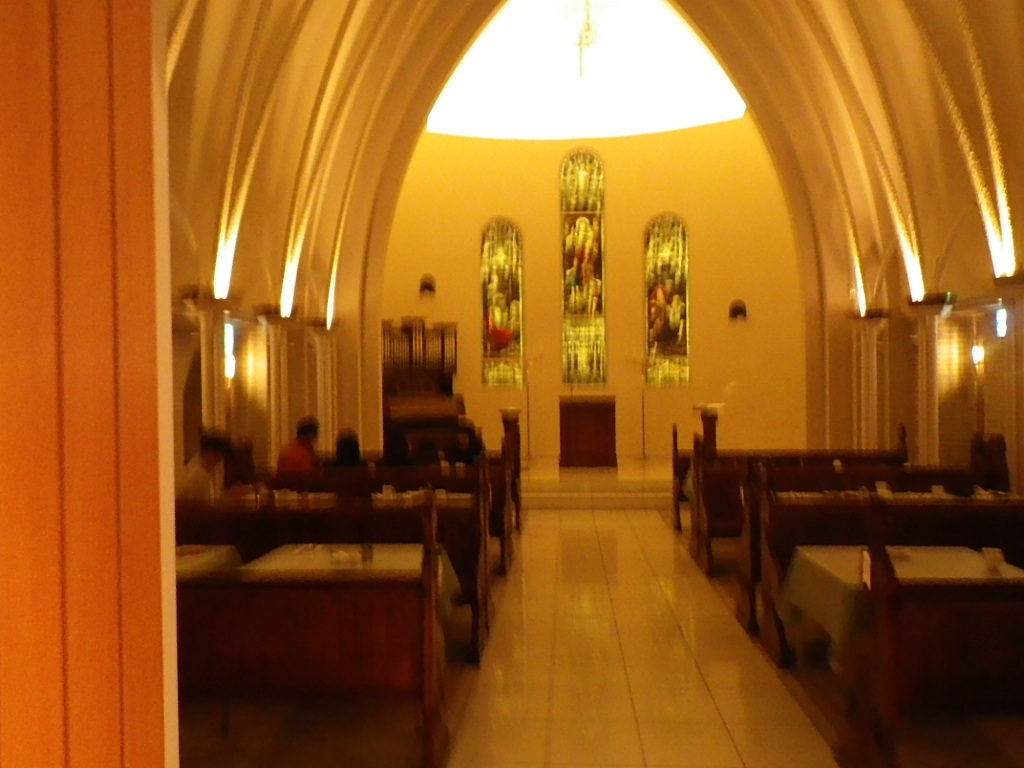朝食バイキングに通された場所がなんと教会でした。最初は席の変更をお願いしたのですが、しばらくすると居心地が良くなってきてそのままでお願いしなおしました。そして次の日の朝食は早い目に行って教会をリクエストしました。