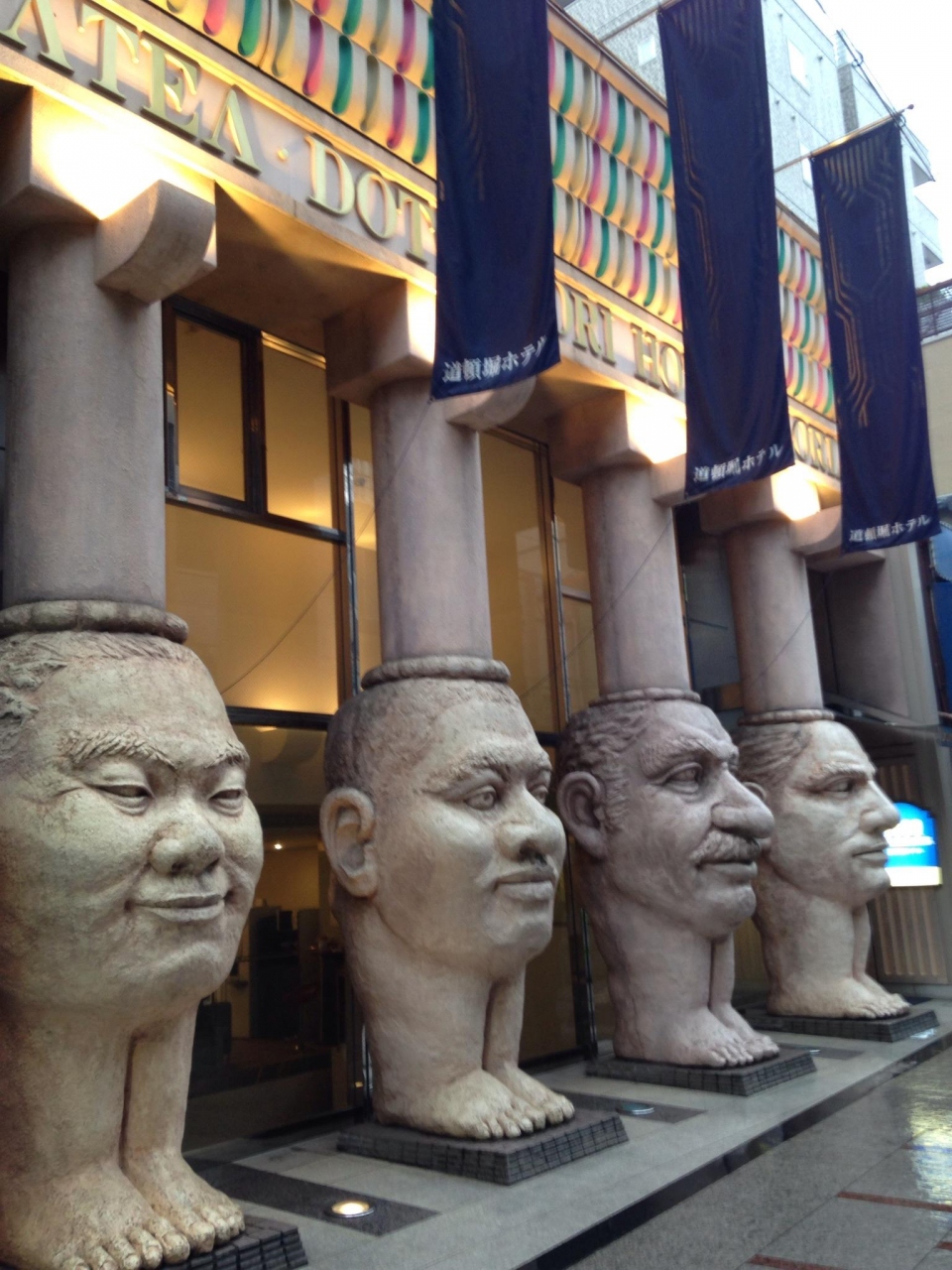 ホテルの入り口に大きな顔のモニュメントがいっぱいある変わった見た目のホテルです。ビジネスホテルなので部屋はとっても小さいですが、空気清浄器もついていたし、wifiもある、PCも無料レンタル可能、冷蔵庫にも無料のミネラルウォーターが入っていました。